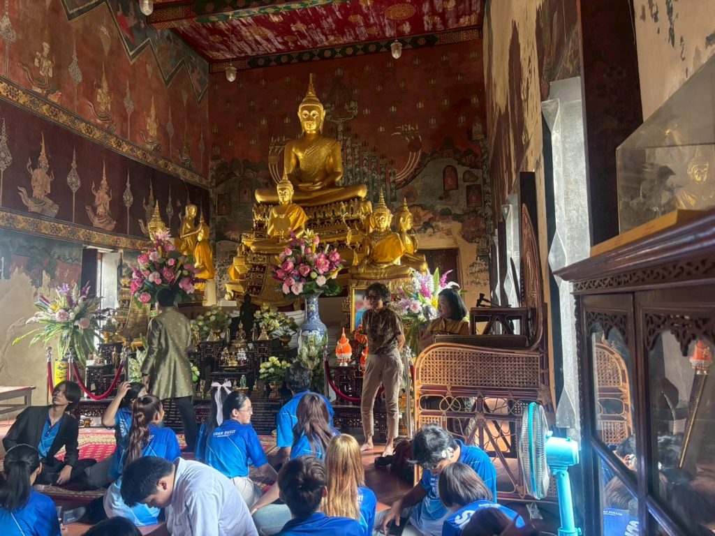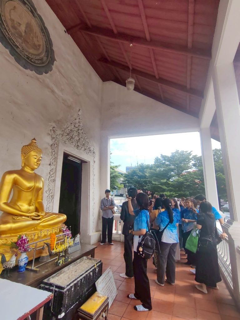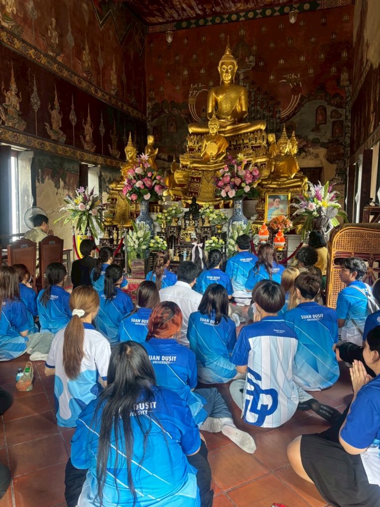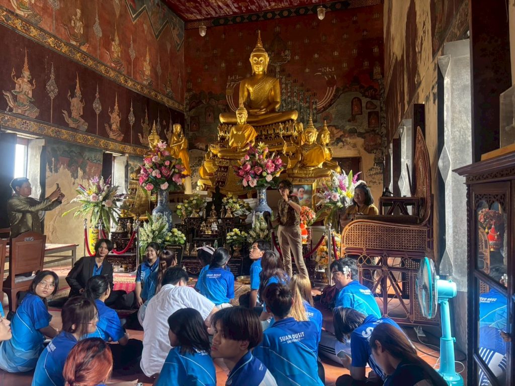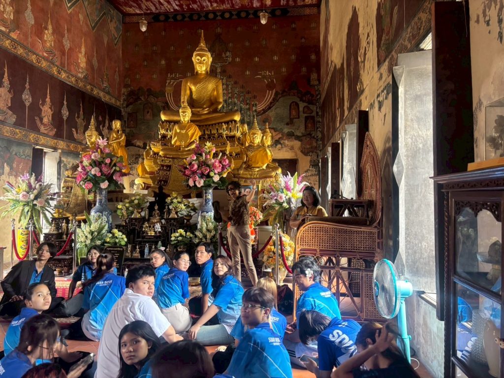 หลักสูตรภาษาและวัฒนธรรมไทย คณะมนุษยศาสตร์และสังคมศาสตร์ มหาวิทยาลัยสวนดุสิตได้จัดกิจกรรมเรียนรู้เชิงประวัติศาสตร์ ณ ศาลเจ้าพ่อปูนเก่ง สามเสน และวัดโบสถ์สามเสน เมื่อวันจันทร์ที่ 18 สิงหาคม 2568 เวลา 08.00–12.00 น. ภายในกิจกรรม นักศึกษาได้เรียนรู้เรื่องราวและเกร็ดประวัติศาสตร์ ผ่านการบรรยายและถ่ายทอดความรู้จาก ผู้ช่วยศาสตราจารย์ ดร.ดวงกมล อัศวมาศ ผู้จัดโครงการ และผู้บรรยาย ถ่ายทอดองค์ความรู้ที่เป็นประโยชน์ เพื่อเสริมสร้างความเข้าใจด้านภาษา ประวัติศาสตร์ และวัฒนธรรมในพื้นที่ดุสิต ผู้ช่วยศาสตราจารย์ ดร.สาระ มีผลกิจ วิทยากรผู้ทรงคุณวุฒิ ถ่ายทอดความรู้เชิงลึกเกี่ยวกับ “ศาลเจ้าปุนเถ้ากงม่า” และ “วัดโบสถ์สามเสน” คุณธนพันธ์ บุญสถิต วิทยากร ถ่ายทอดเรื่อง การถ่ายภาพและการถ่ายคลิปอย่างมืออาชีพ พร้อมแนะนำเทคนิคการเลือกหัวข้อเรื่องเพื่อนำไปผลิตเป็น สื่อออนไลน์ อย่างสร้างสรรค์ การถ่ายทอดของทั้งสามท่าน ทำให้นักศึกษาได้รับทั้งความรู้ด้านภาษา ประวัติศาสตร์ วัฒนธรรม และทักษะการสื่อสารยุคใหม่อย่างรอบด้าน พร้อมเปิดมุมมองใหม่ ๆ ในการเรียนรู้ ขอขอบคุณอาจารย์ทั้งสามท่านที่กรุณามาเป็นผู้จัดและวิทยากร ถ่ายทอดความรู้และประสบการณ์อันทรงคุณค่า กิจกรรมครั้งนี้จึงดำเนินไปด้วยบรรยากาศที่อบอุ่น และสำเร็จลุล่วงด้วยดี