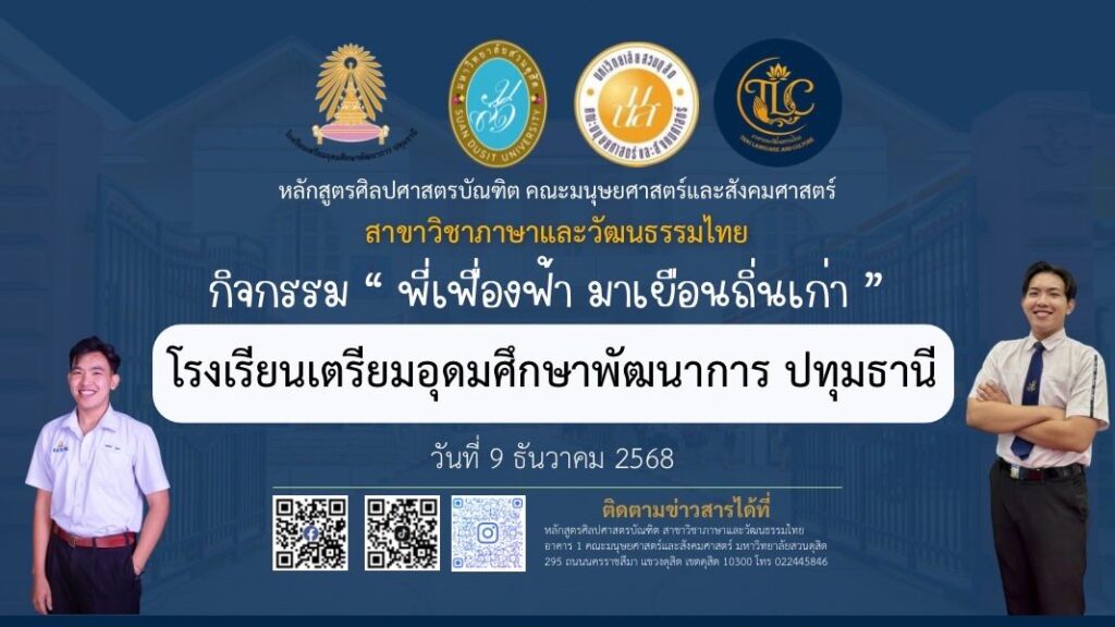 All | ข่าวกิจกรรมด้านทำนุบำรุงศิลปวัฒนธรรม | ข่าวกิจกรรมนักศึกษา กิจกรรม “พี่เฟื่องฟ้า มาเยือนถิ่นเก่า” กลับมาสร้างแรงบันดาลใจให้น้อง ๆ ถึงโรงเรียน! ByTLC December 9, 2025December 11, 2025